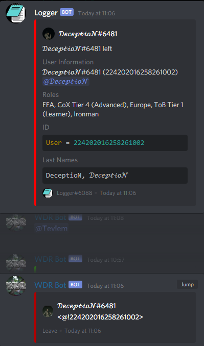 I posted in WeDoRaids discord and 'Kulers alt' and 'VUNDA BOI' joined. We finished the raid and the RSN 'kulers alt' got the Twisted Bow drop. He went and grabbed it from the chest while VUNDA and I smashed our keyboards in excitement. We all left to the outside bank, by the time I stepped outside I didn't see him on my map, instantly checked my clan chat and he was gone. I then went to WeDoRaids to report him to the mods and hopefully get him banned there. I didn't realize at the time that I had him added, when asked to see if he was on my list by mods I saw a weird name and took a shot. Turns out that the new name's (NoitpeaceD) stats were exactly the same as the 'kulers alt' character. They were able to track him because HE HIMSELF reported a stolen items two days prior.