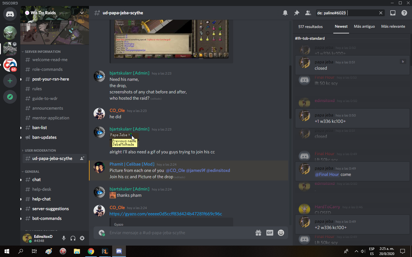 papa jeba posted in a split wdr channel. We did a few raids and on the last one he got a scythe and left.